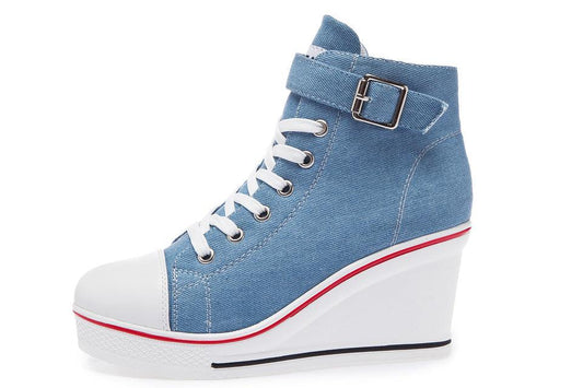 Denim Wedge - Women High Top Canvas Shoes