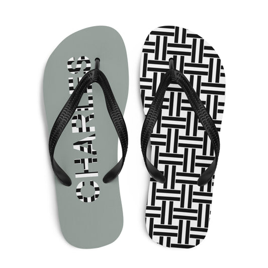 Black & Red Checker's Design with Valentine's Hearts flip-flops