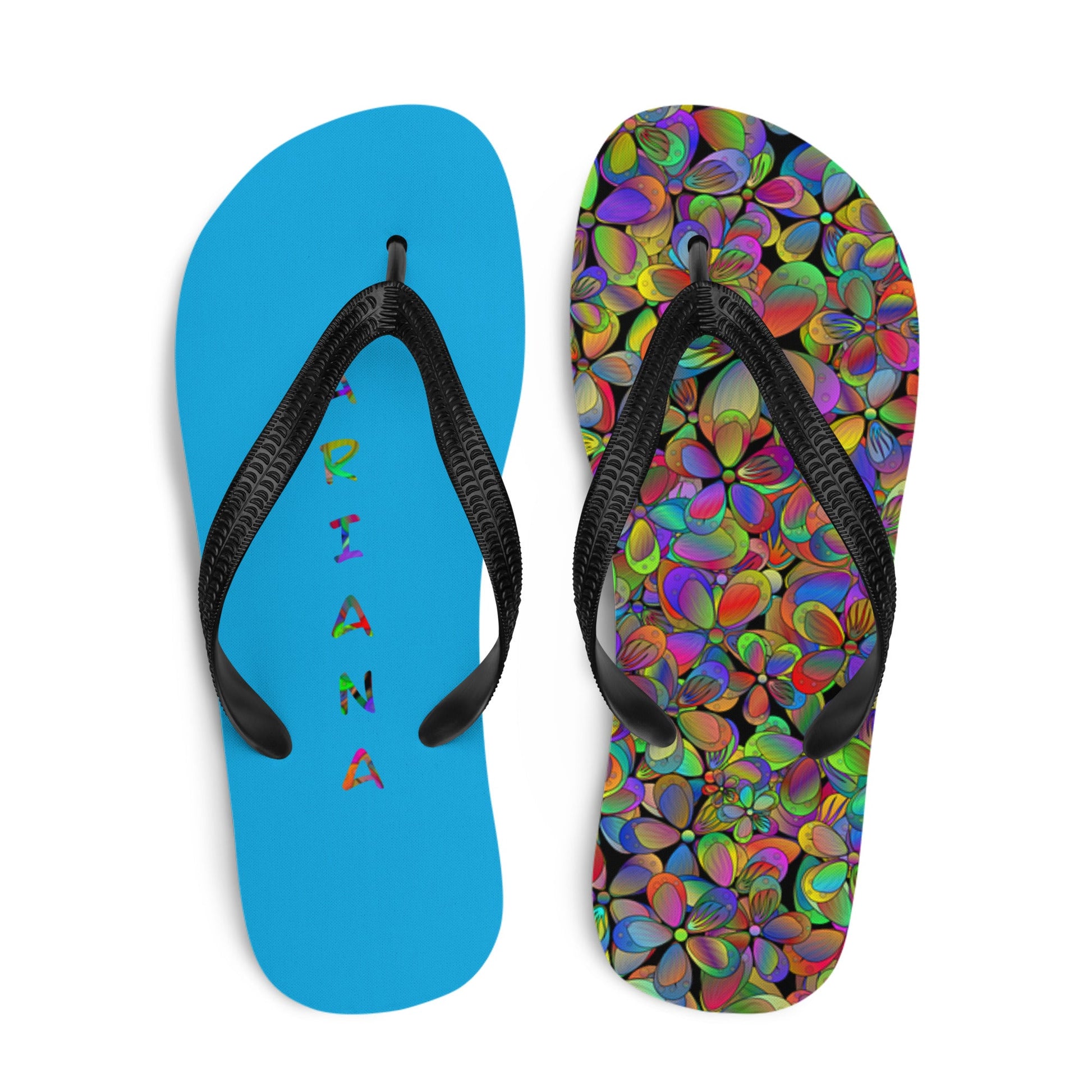 Ariana's name design flip-flops are the perfect gift for any girl. The material is made of rubber, which is sturdy and provides an excellent grip. The design is printed on the front of the flip-flop, so they are personalized and can't be lost.