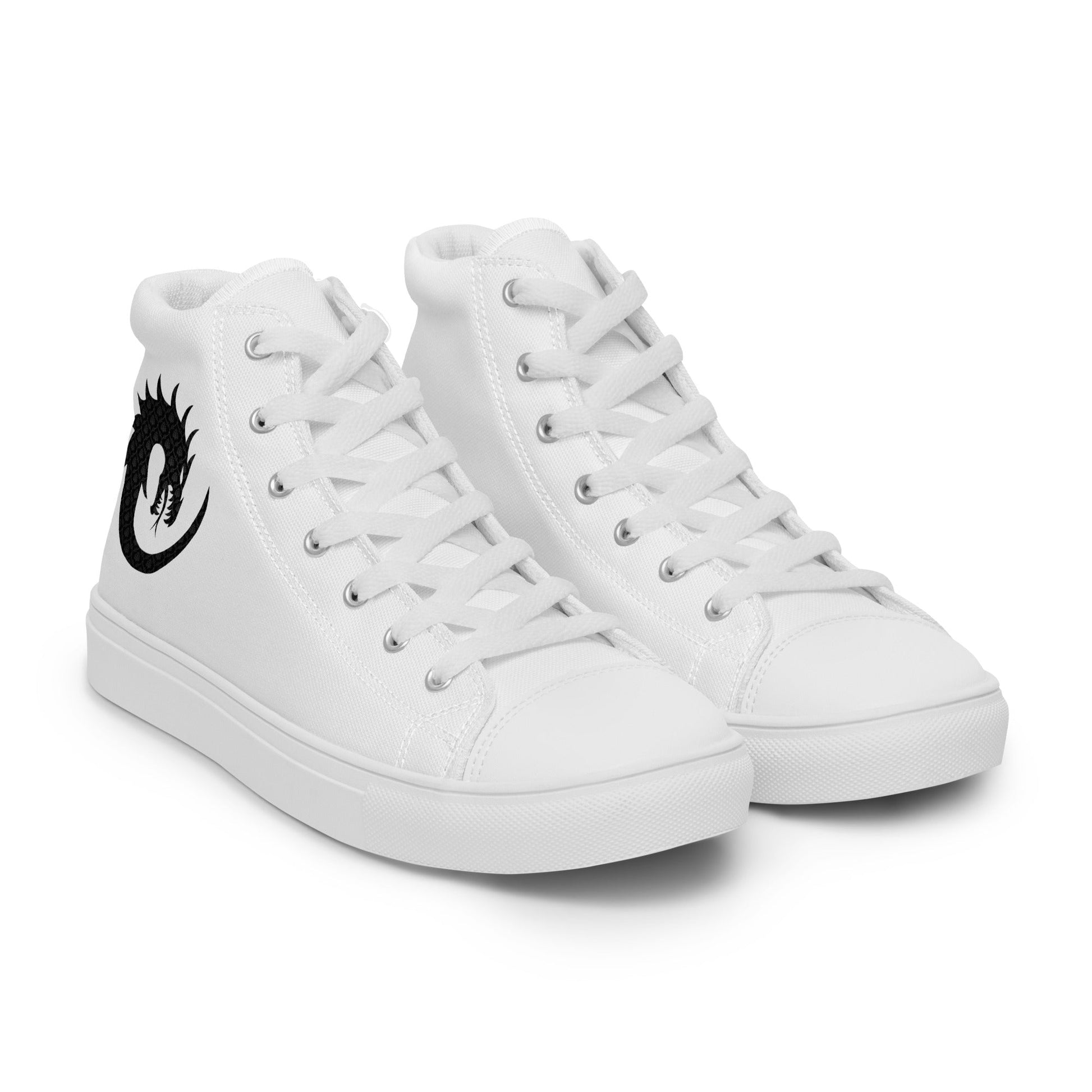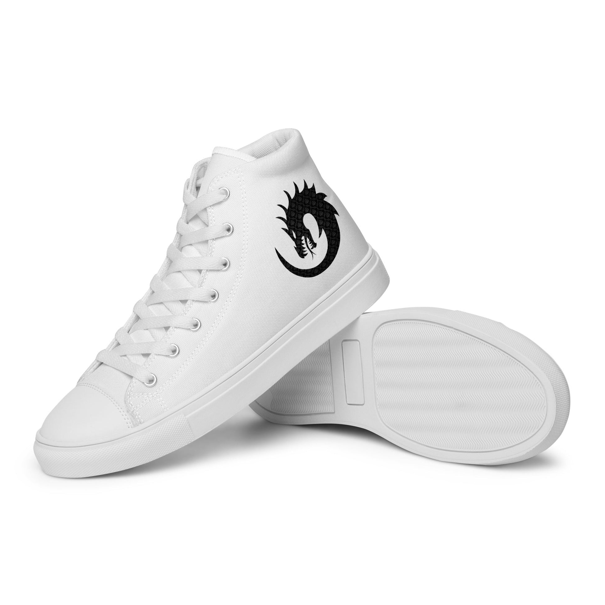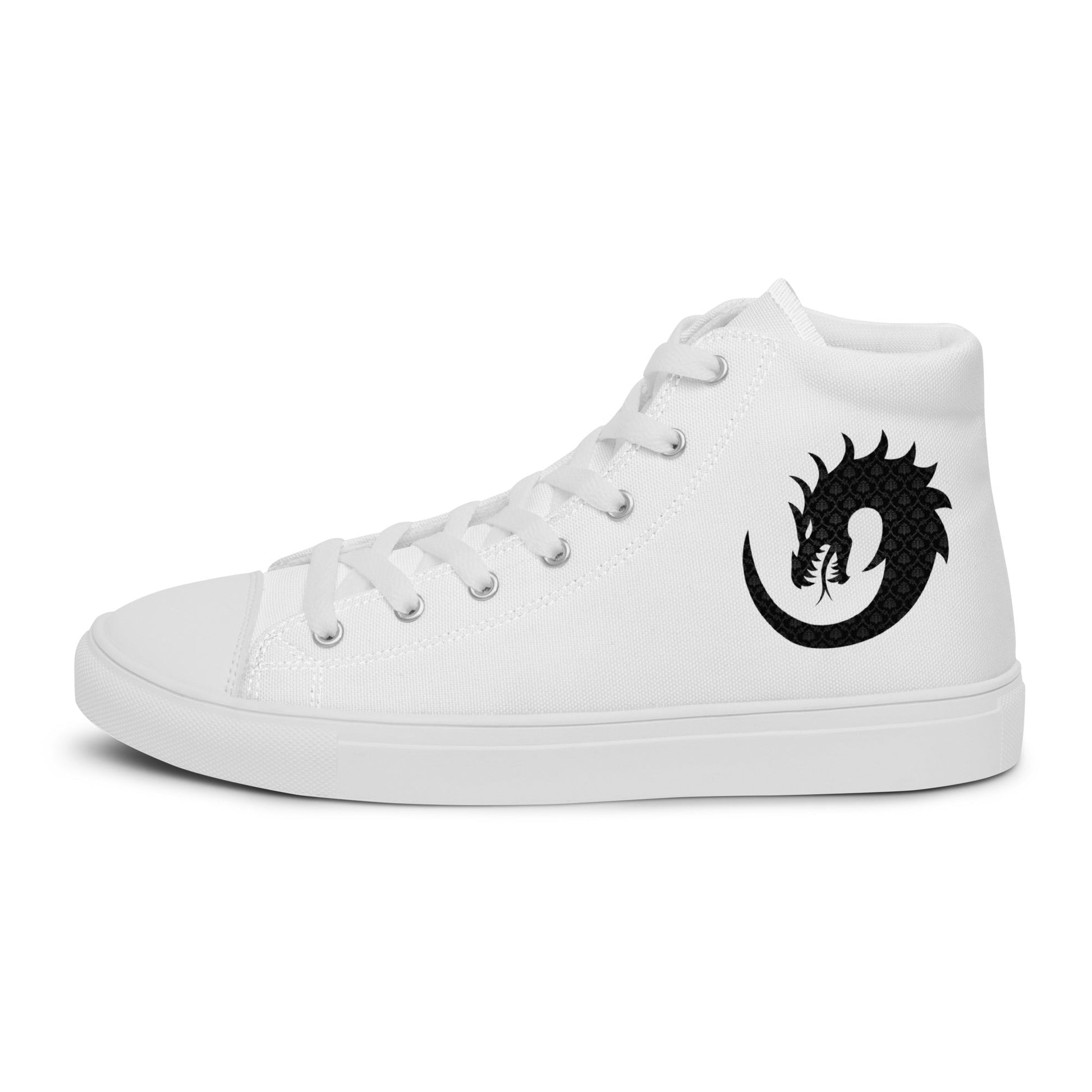 Elevate your style with our Men's White High-Top Canvas featuring an intricate dragon pattern. Inspired by mythical tales, these high tops bring a touch of enigmatic charm to your look. The classic white canvas is the perfect canvas for the captivating dragon design, adding a unique twist to your footwear collection. Step into a world of timeless elegance and mythical allure with every stride.