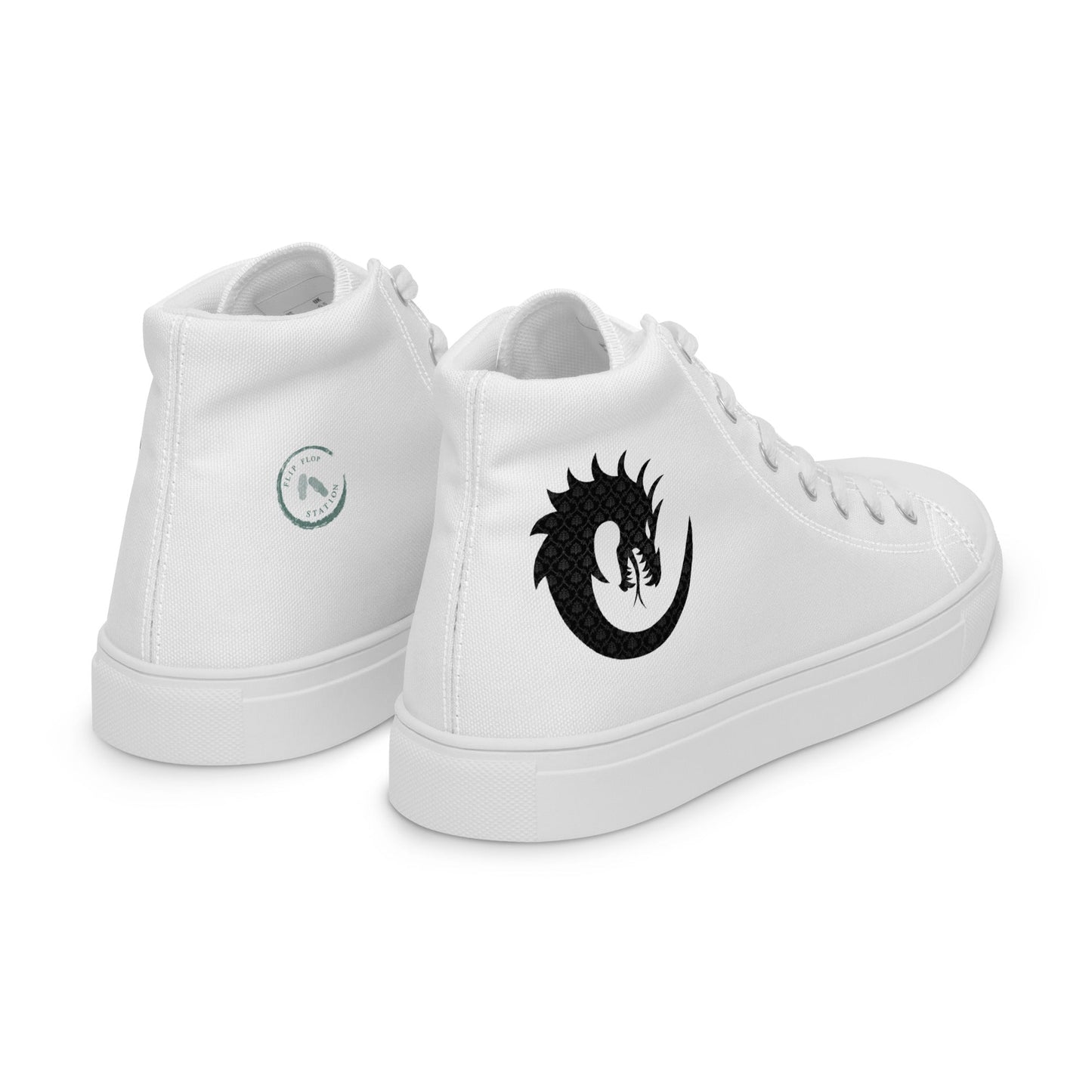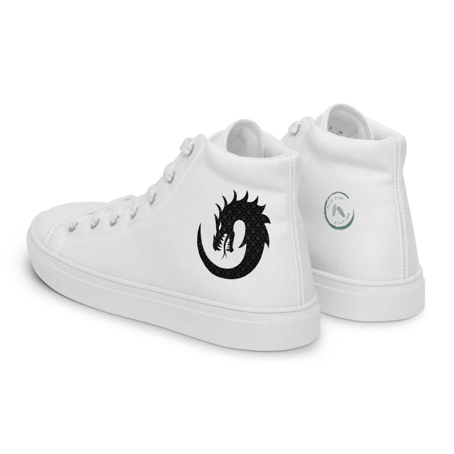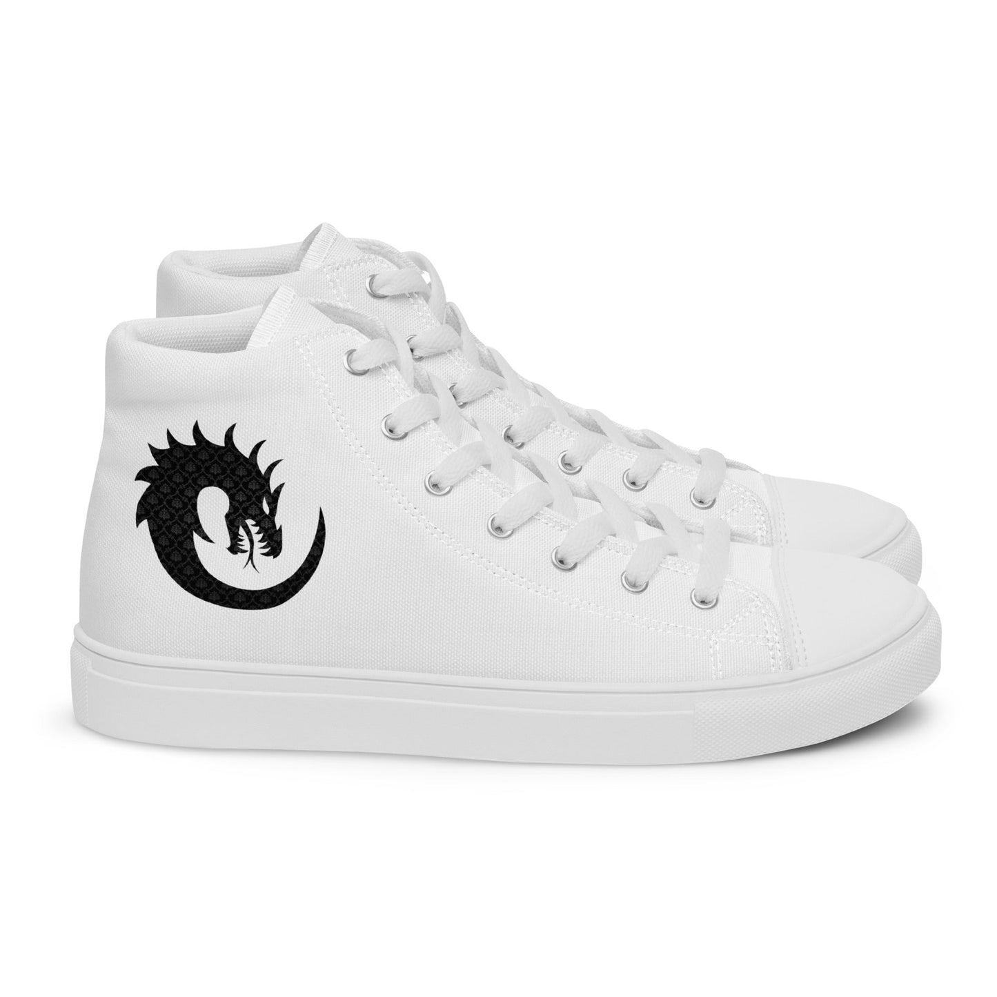 Elevate your style with our Men's White High-Top Canvas featuring an intricate dragon pattern. Inspired by mythical tales, these high tops bring a touch of enigmatic charm to your look. The classic white canvas is the perfect canvas for the captivating dragon design, adding a unique twist to your footwear collection. Step into a world of timeless elegance and mythical allure with every stride.