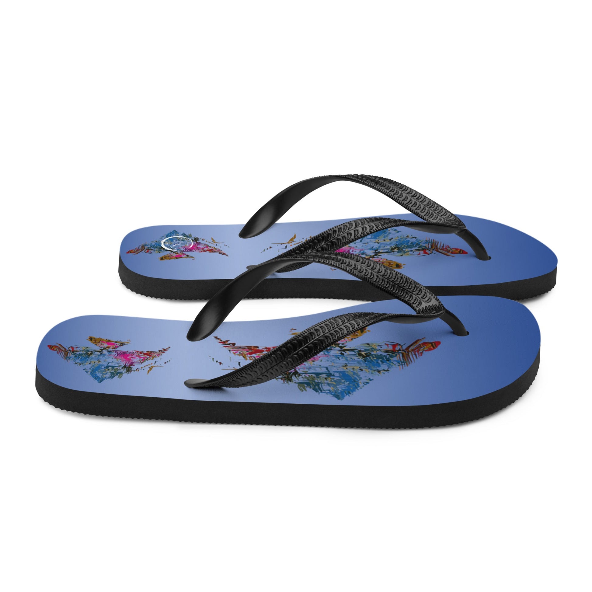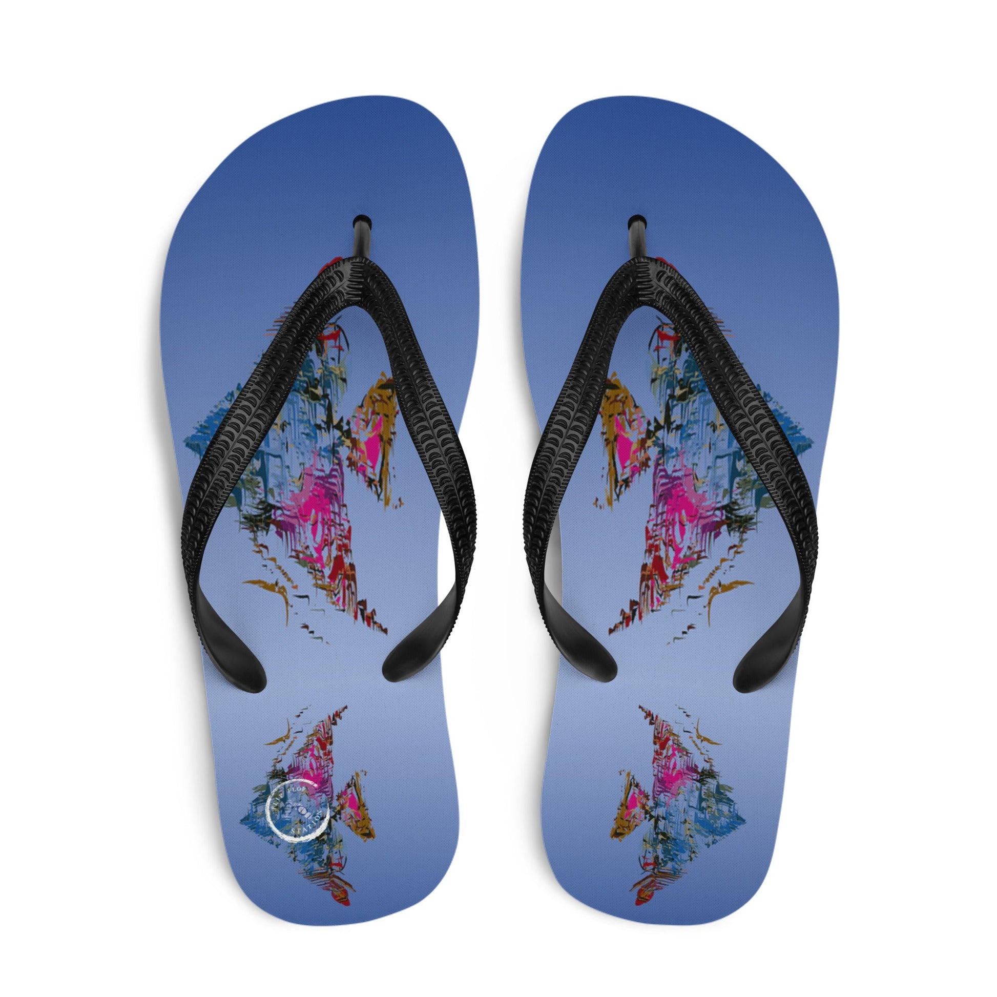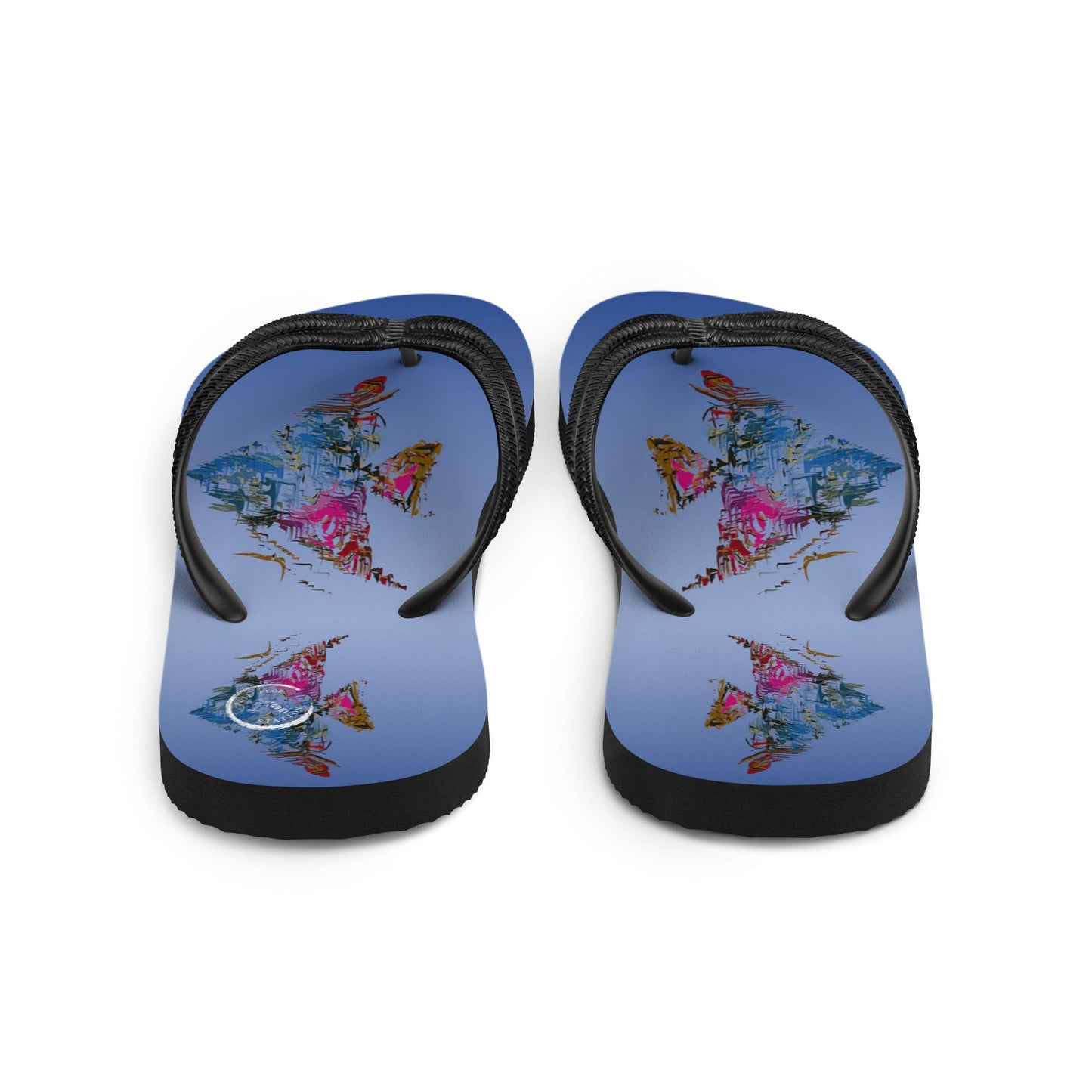 Step out in style with these eye-catching "Fish in a Painting" flip flops. The design features a colorful and vibrant painting of various types of fish, giving them a unique and artistic touch. The comfortable and durable rubber sole makes them perfect for all-day wear, whether you're lounging at the beach or running errands around town.