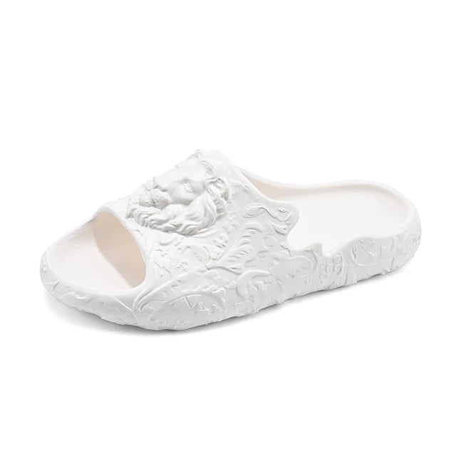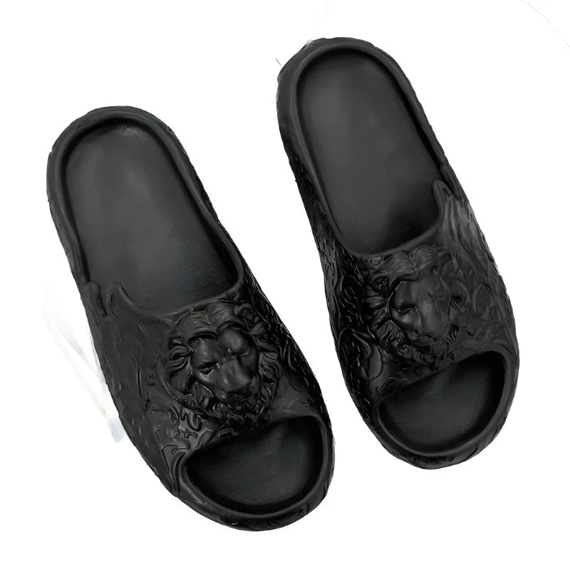 Introducing Lion's Head Men's Beach Sandals, where laid-back style meets beach-ready durability. These EVA/PVC sandals feature an embossed lion head pattern, adding a touch of boldness to your seaside look. Designed for comfort and practicality, they boast a lightweight construction and a sturdy sole that can handle sandy shores and boardwalk strolls alike. Slip into these beach sandals and channel your inner king of the jungle wherever your adventures take you.