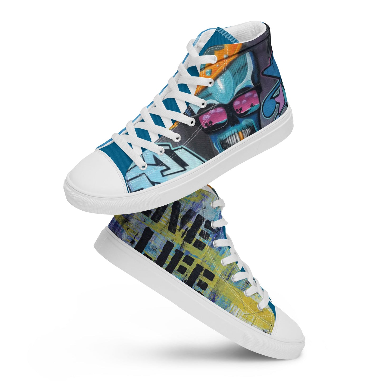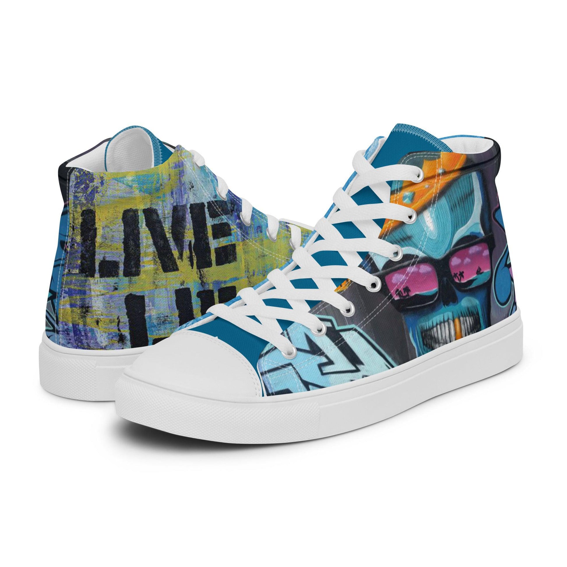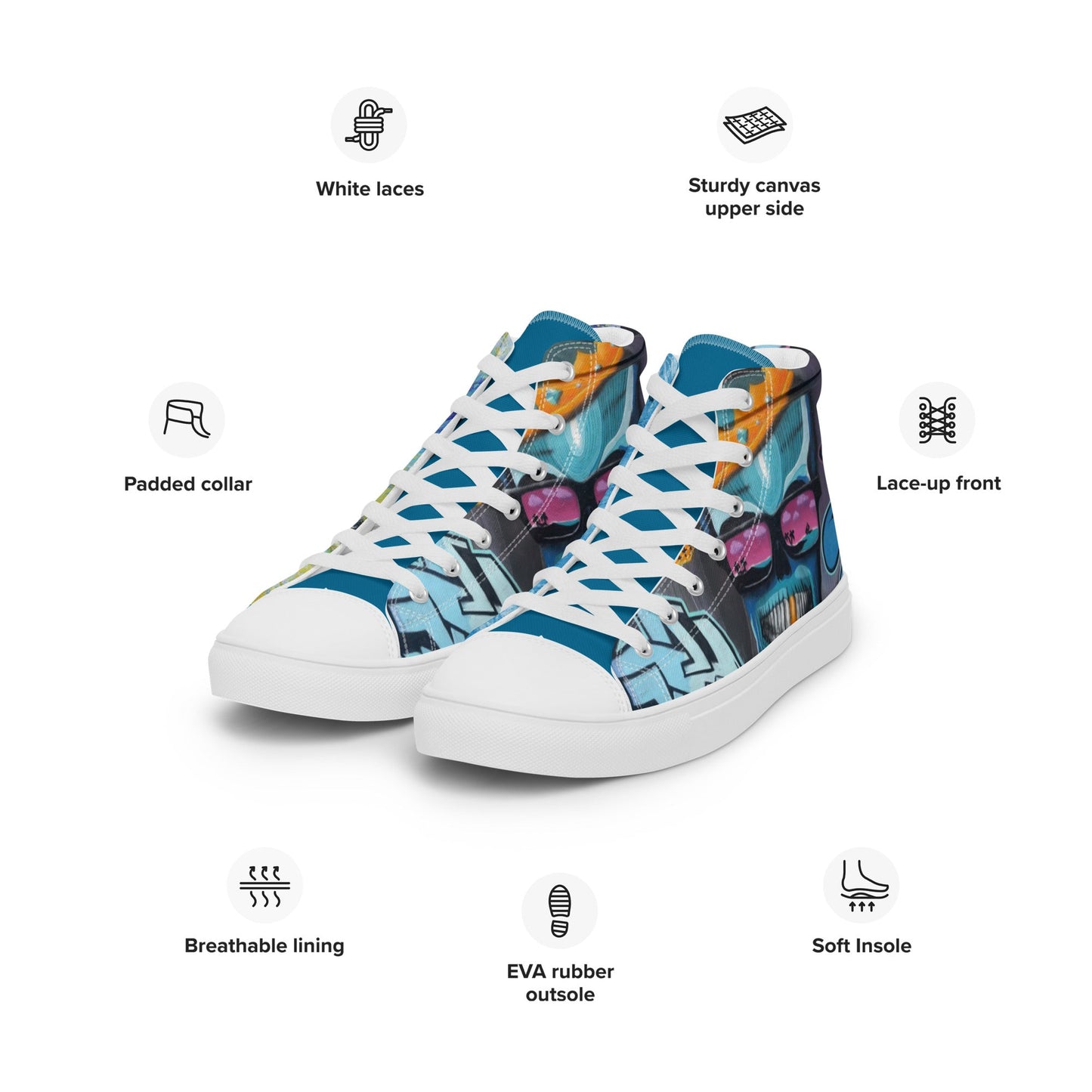 Do you like street art? Then, take it with you on this High Top Canvas shoe pair. These handmade, trendy shoes are sure to spice up your outfit. Shop yours now!