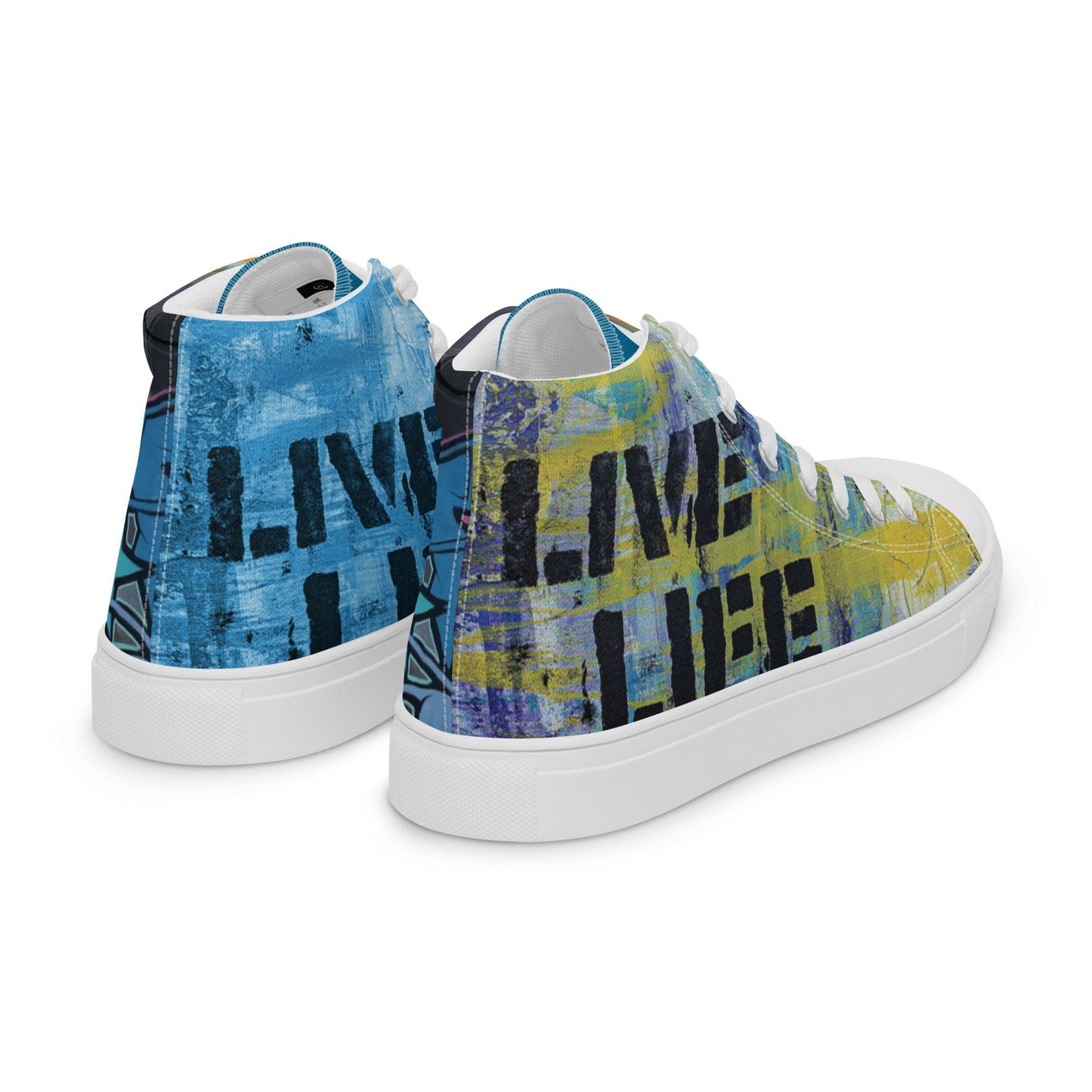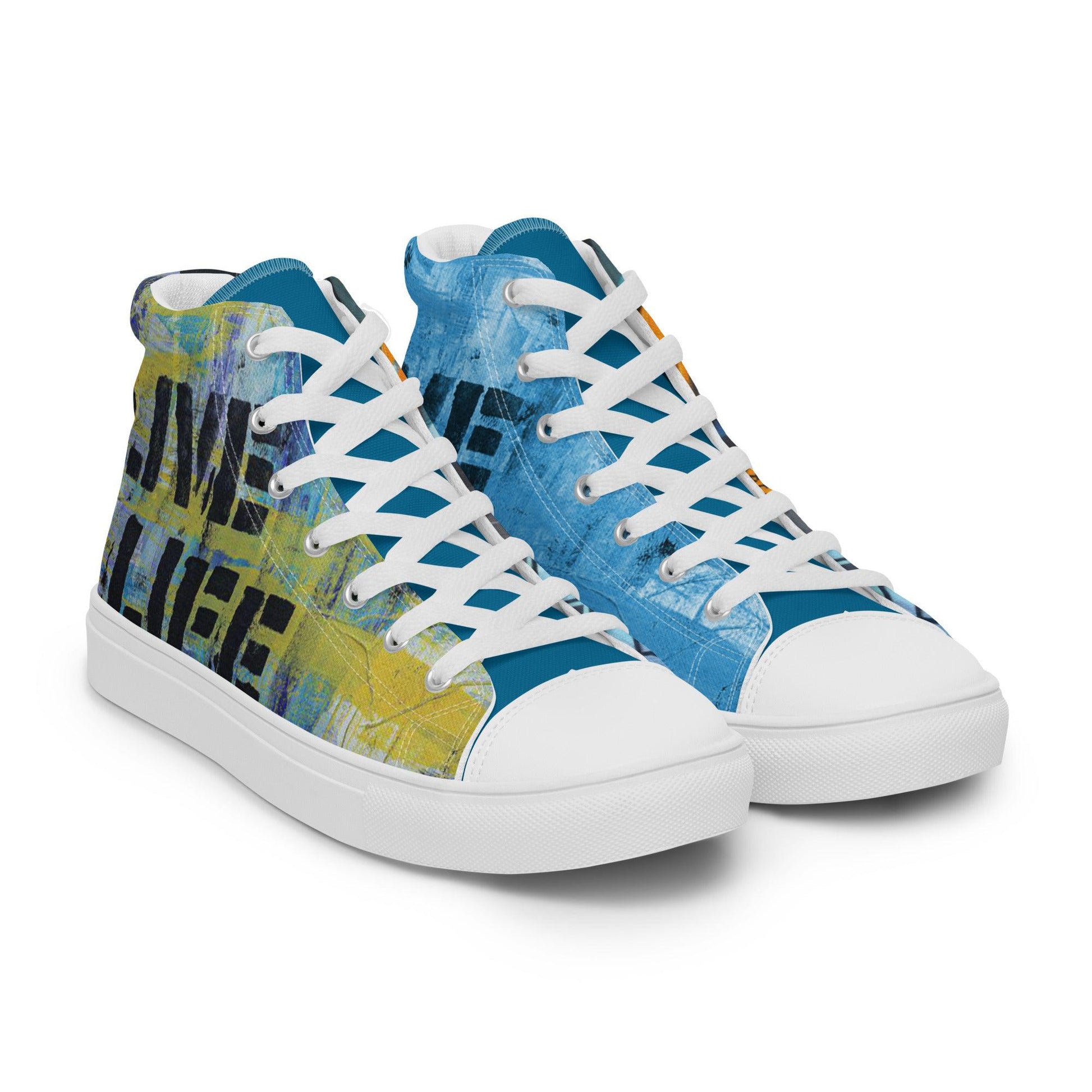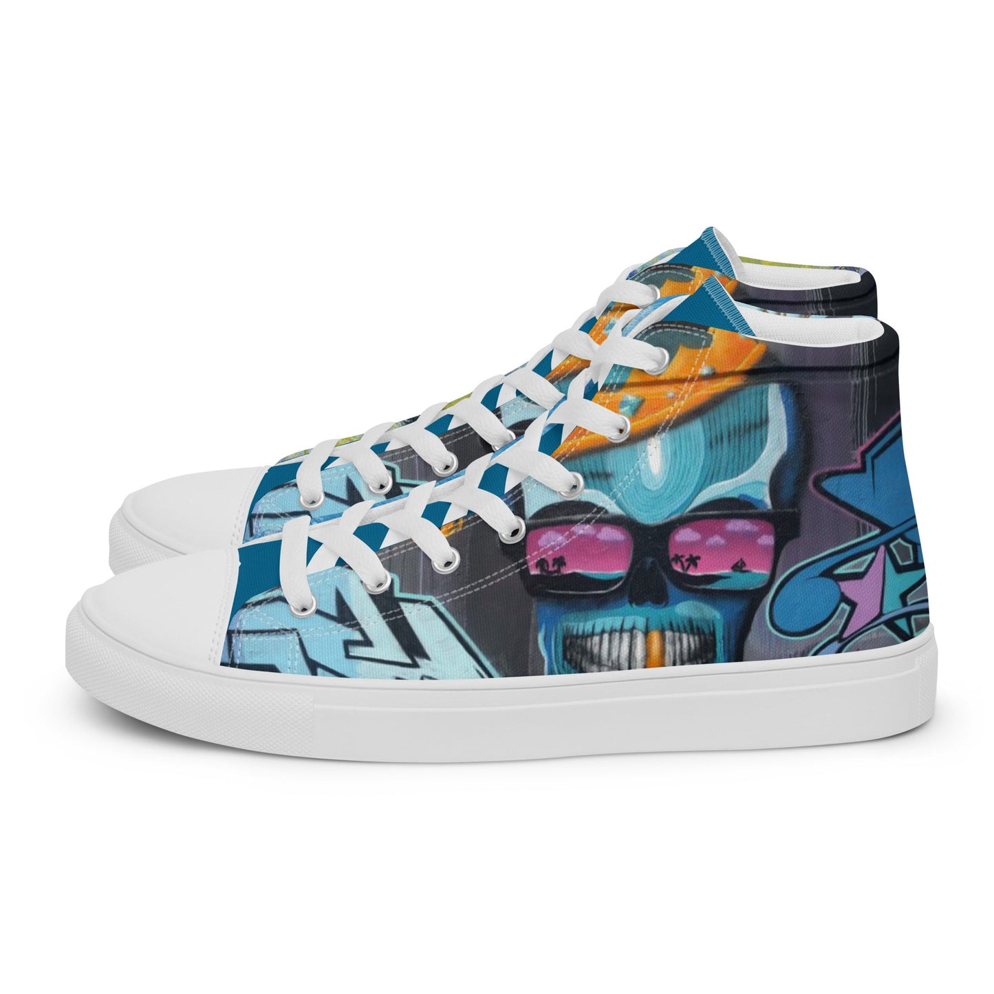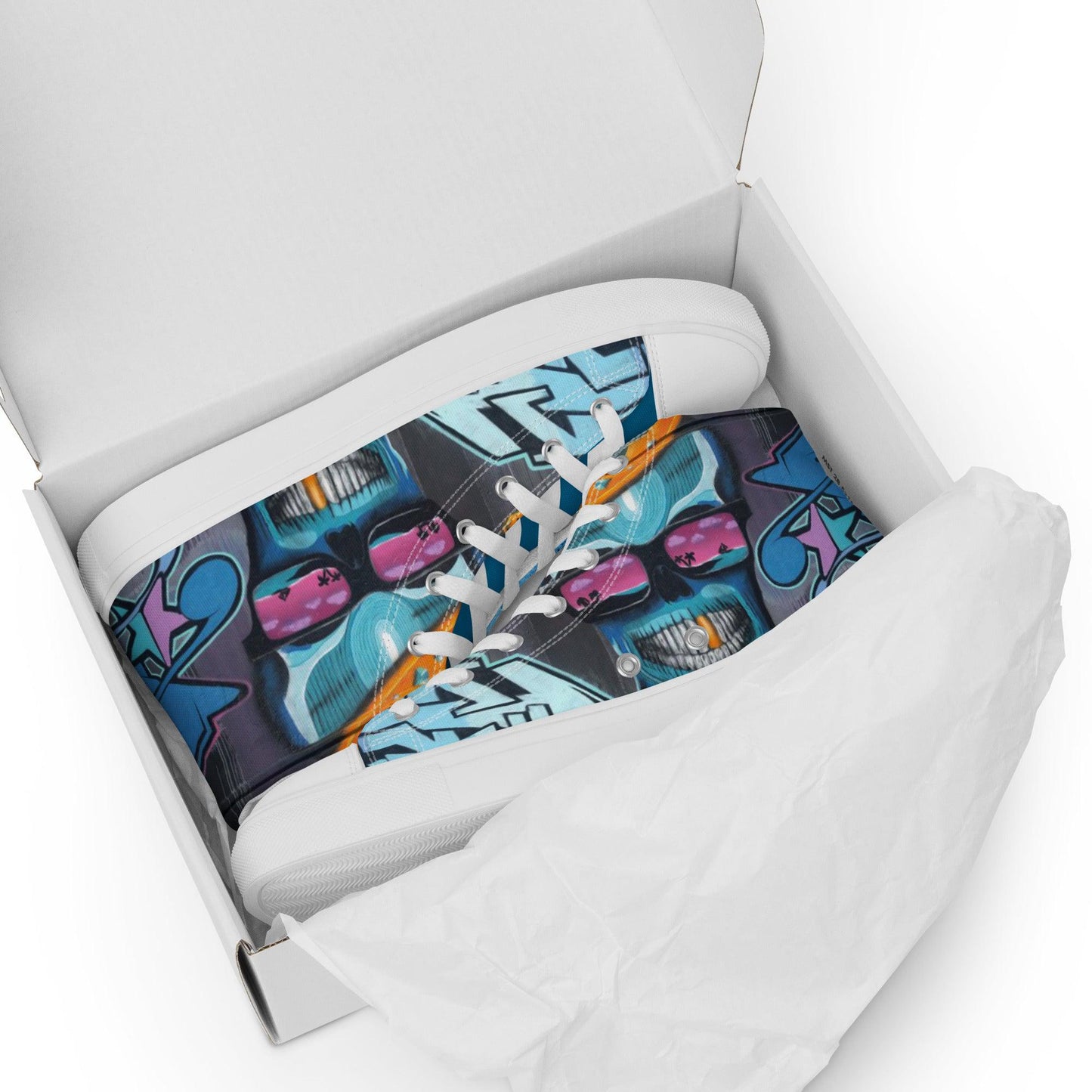 Do you like street art? Then, take it with you on this High Top Canvas shoe pair. These handmade, trendy shoes are sure to spice up your outfit. Shop yours now!