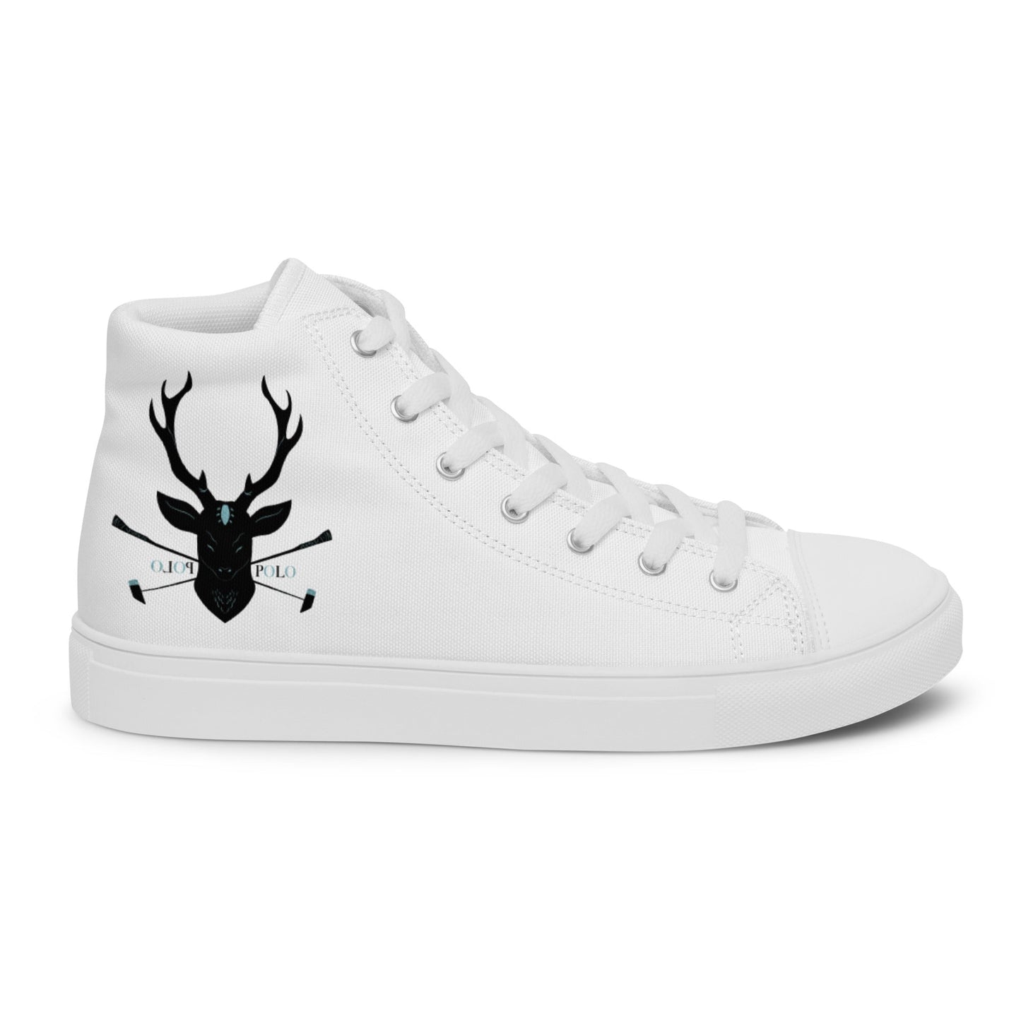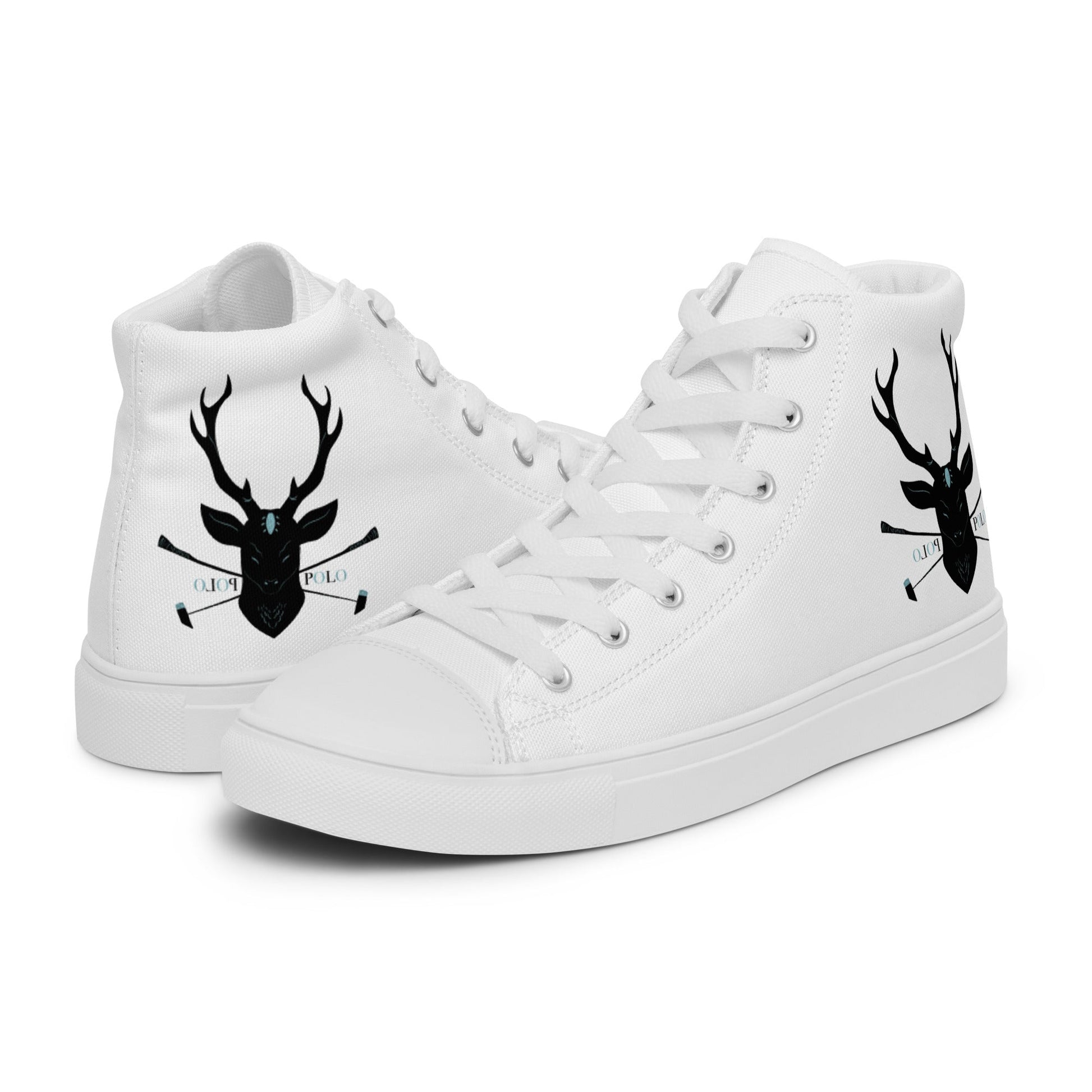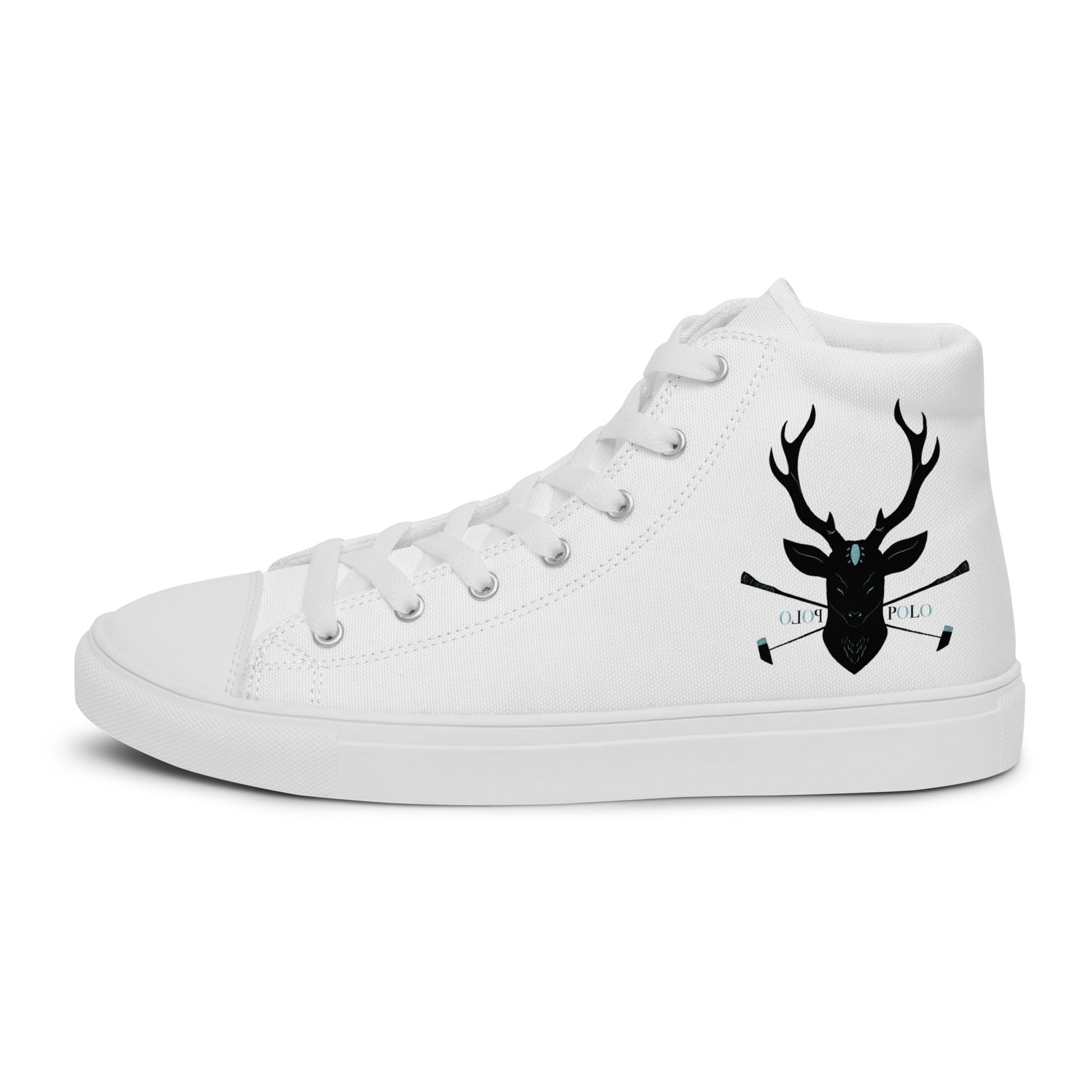 These horse polo high-top shoes for men are made of 100% cotton canvas. They are trendy among the people who love horses. The design is very attractive, featuring a stag and polo mallets