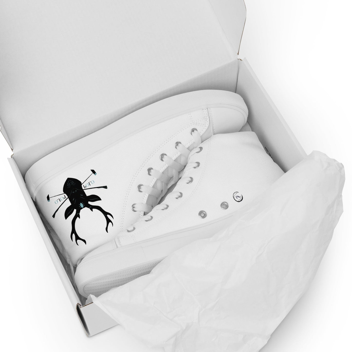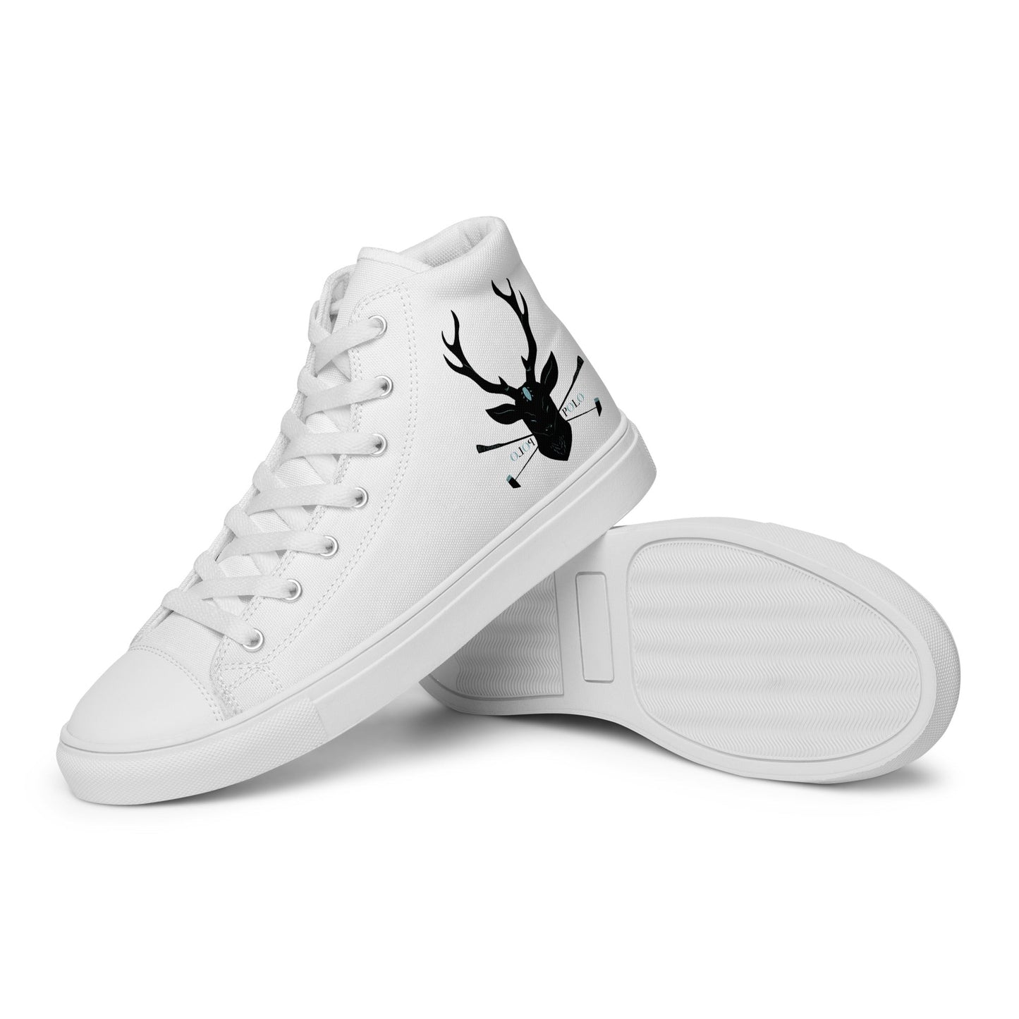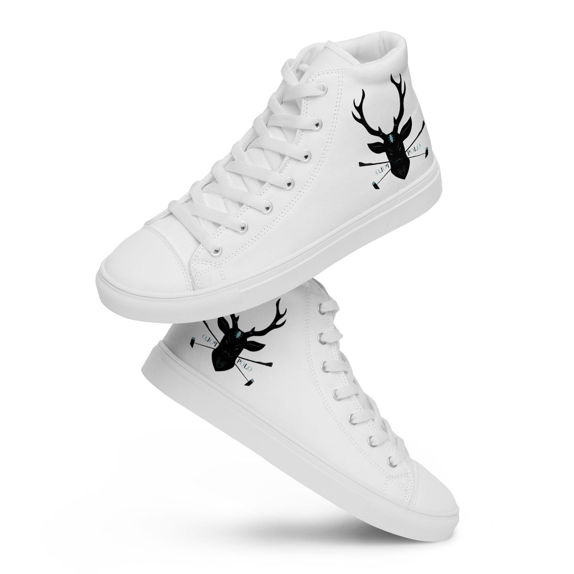 These horse polo high-top shoes for men are made of 100% cotton canvas. They are trendy among the people who love horses. The design is very attractive, featuring a stag and polo mallets