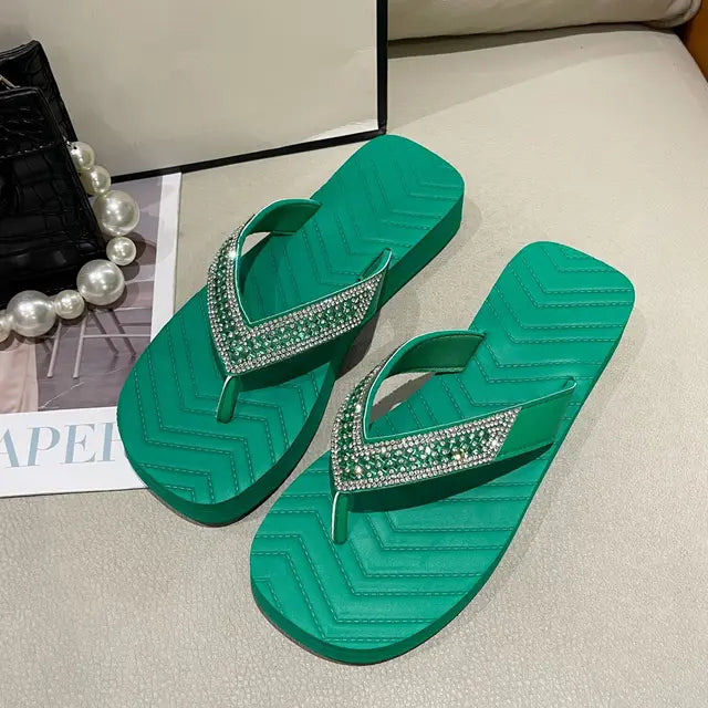 Introducing our stunning Rhinestone Detail Women's Flip Flops, the epitome of style and comfort for sunny days ahead! Elevate your summer wardrobe with these chic flip flops featuring dazzling rhinestone embellishments that add a touch of glamour to every step. Crafted with premium materials, these flip flops ensure durability and long-lasting wear. Whether you're strolling along the beach or running errands in the city, these flip flops offer both fashion and functionality. Slip into luxury with our Rhinestone Detail Women's Flip Flops and step out in style wherever your adventures take you!
