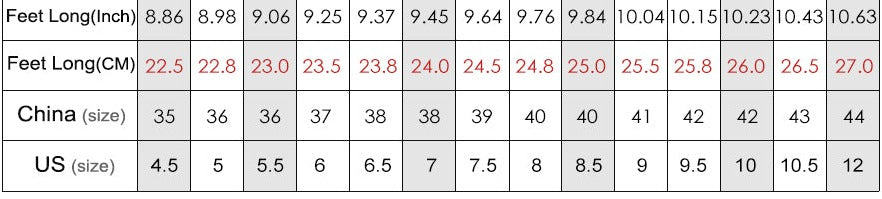 Choose Based on Your Feet Length:It is crucial to select your shoe size based on the measurement of your feet. Refer to our size chart for the corresponding heel-to-toe length and find the size that aligns with your measurement.