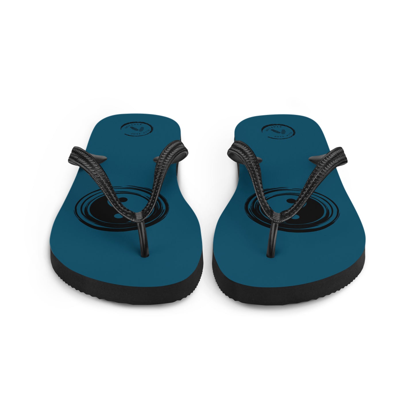 Make a bold fashion statement with our distinctive men's flip flops featuring a captivating ying-yang symbol on a deep blue background. Embrace the balance of contrasts as you step confidently into comfort and individuality.